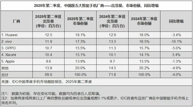 根据IDC的数据显示,就在2025年第二季度,华为已凭借18.1%的份额重夺中国市场出货量第一的宝座。而苹果,则以13.9%的份额,滑落至第五。