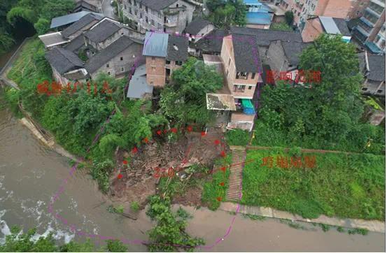 6月21日11时30 分,武隆区长坝镇胜利村凉 水洞滑坡点群测群防员杨朝仿在雨中巡查时,发现该滑坡体 有异动情况,变形体体积约4.08万立方米,严重威胁监测点内5户11人安全,于是立即上报。接报后,镇政府第一时间赶赴现场,同步与区规划自然资源局、驻守工程师电线分钟内将受威胁区内人员全部紧急转移。14时10分左右,滑坡体变形加剧,上部基本滑塌,阻断村道公路。因监测及时、处置得当、转移果断,无人员伤亡。