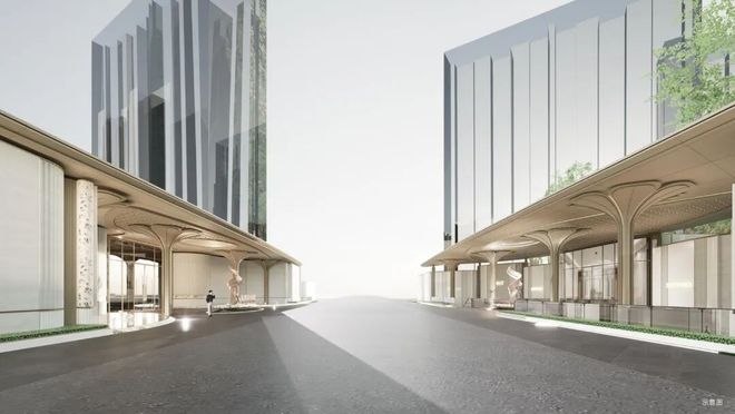 东西区对称环抱式社区主入口,界面长度超百米,再搭配7.1米挑高的悬浮式设计,整体相当阔气,仪式感拉满。