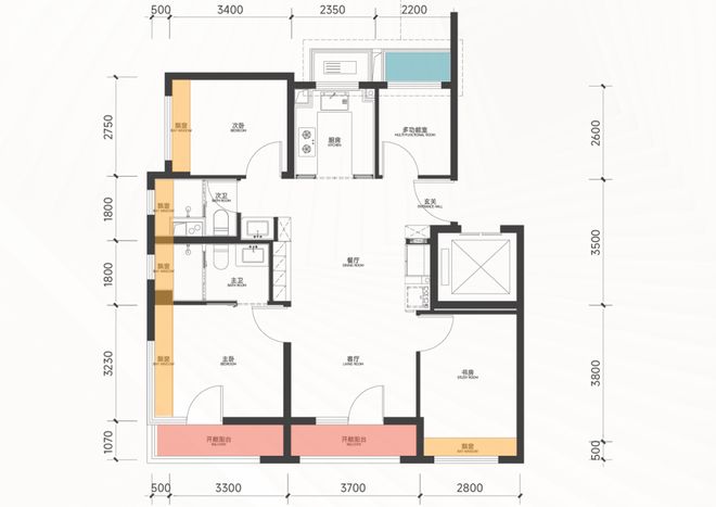 约112平四居,经典四叶草格局,卧室分布于四角,三代人共居也能互不打扰。主卧依旧满配,同样拥有270°视野。